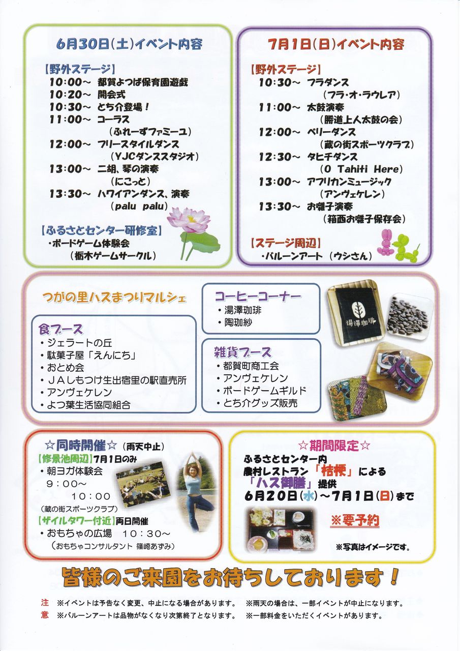 6/30,7/1につがの里で行われるハスまつりの案内もあります。